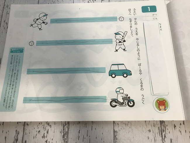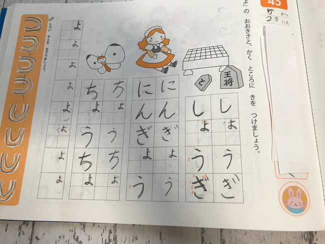 小学校に上がる前の子供の集中力はびっくりするほど続きません。当時は心配して、おばあちゃんに相談したのですが、子供とはだいたいそんなものらしいです。無理せず、毎日1日1ページ、多くても2ページで十分、そして、やりたくないっていう日はお休みしたらいいよ~、とアドバイスをもらいました。