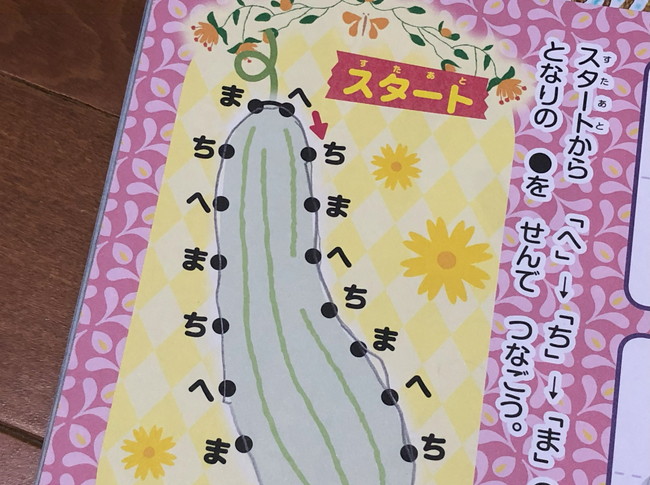 おばあちゃんによると いきなり子供がひらがなを書くというのはとても難しいそうです。理由は、手や指が慣れていないから。ひらがなの練習に入る前に、まずは、手と指を動かす練習から始めることをお勧めされました。そこで、小学校に上がる前の年長さんの時に、市販の教材を買ってみました。